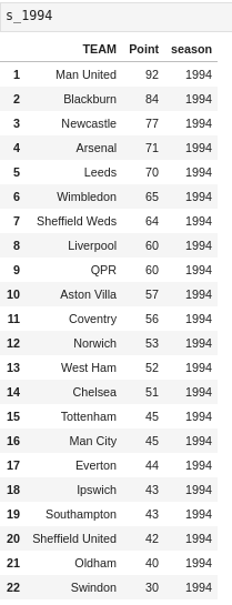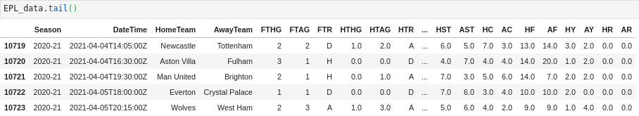 이 데이터는 EPL 1993-94 시즌부터 현재 진행 중인 2020-21 시즌 4월 5일까지의 최신 데이터가 있다.
