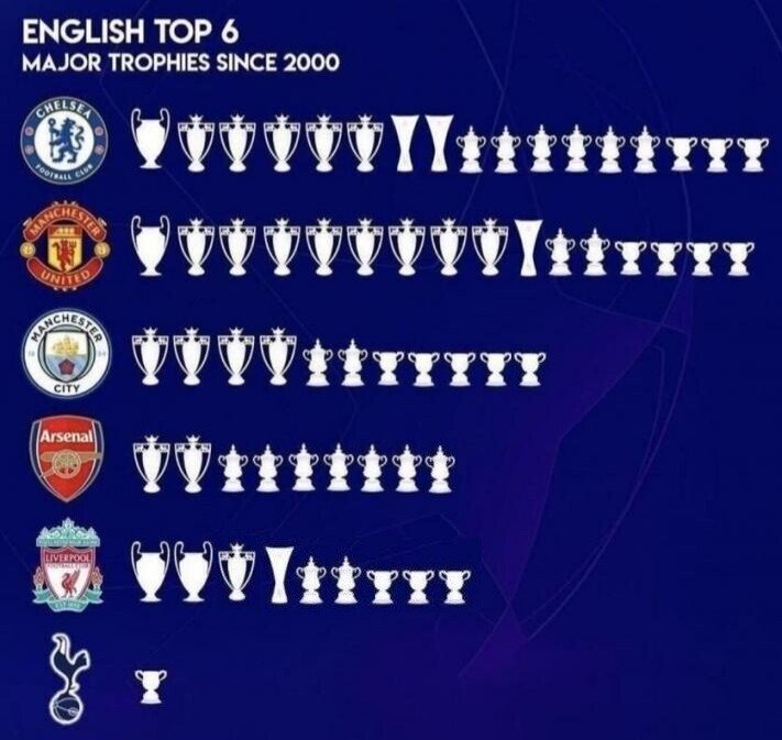 Big6라고 불리면서 2000년 이후 획득한 트로피는 1개이다. (카라바오 컵으로 2008년에 우승했다.)