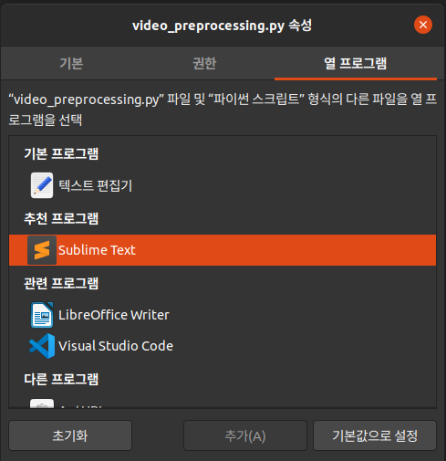 즉, 기본프로그램 설정을 해주어야 하는데, 20.04는 구글링을 하는데 정보가 많이 없어서 답답한 점이 있었다.