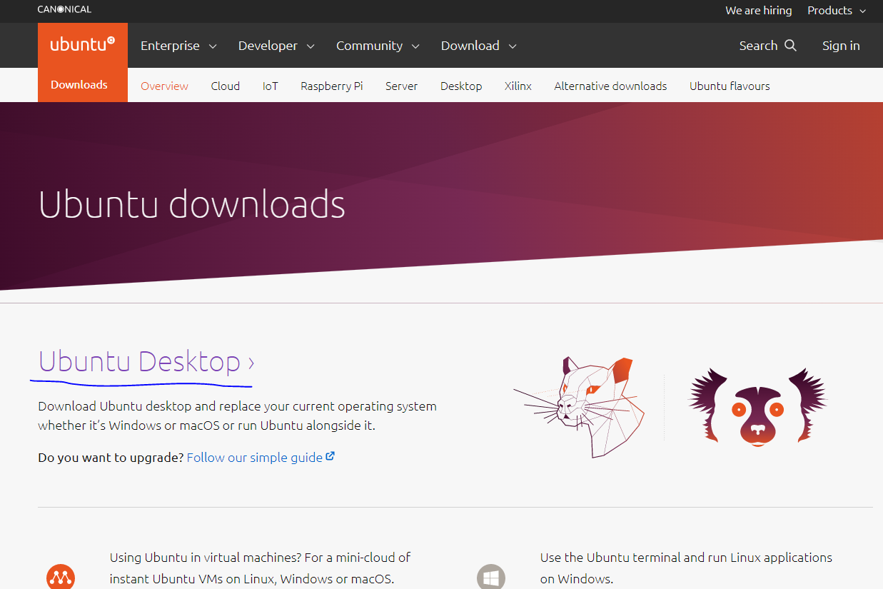 1) ubuntu 사이트에서 Ubuntu Desktop을 들어간다.